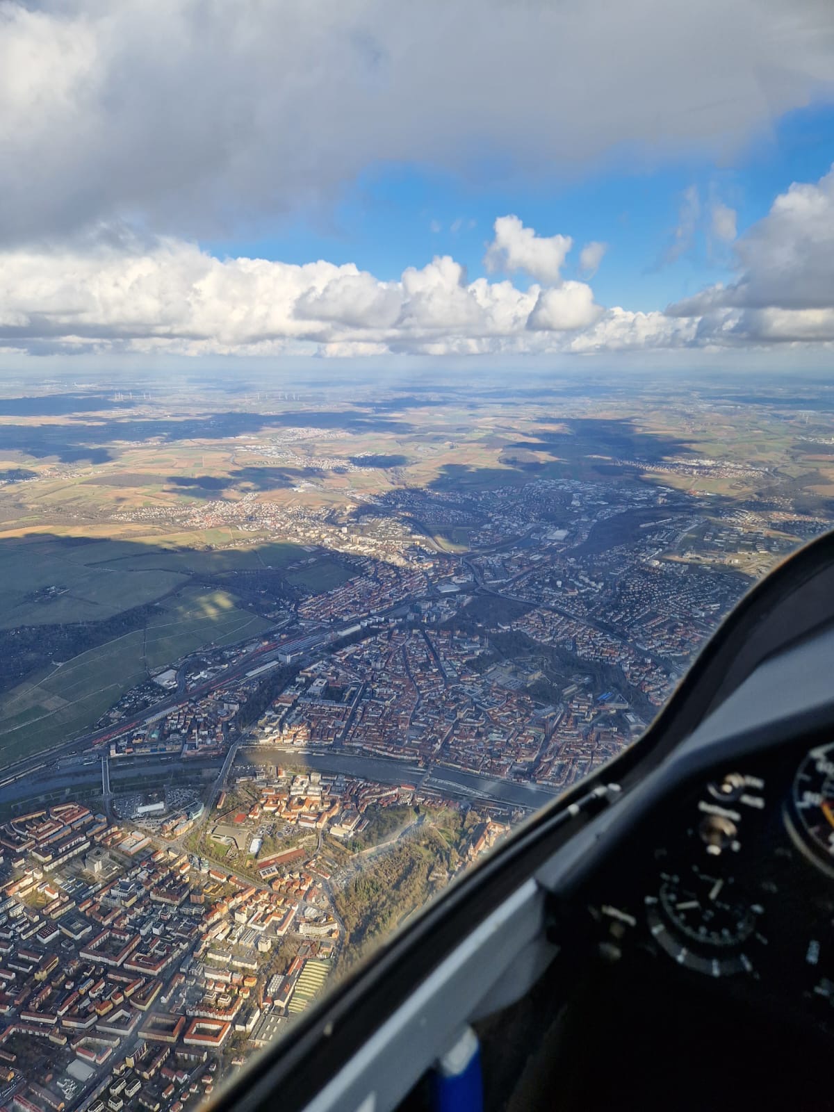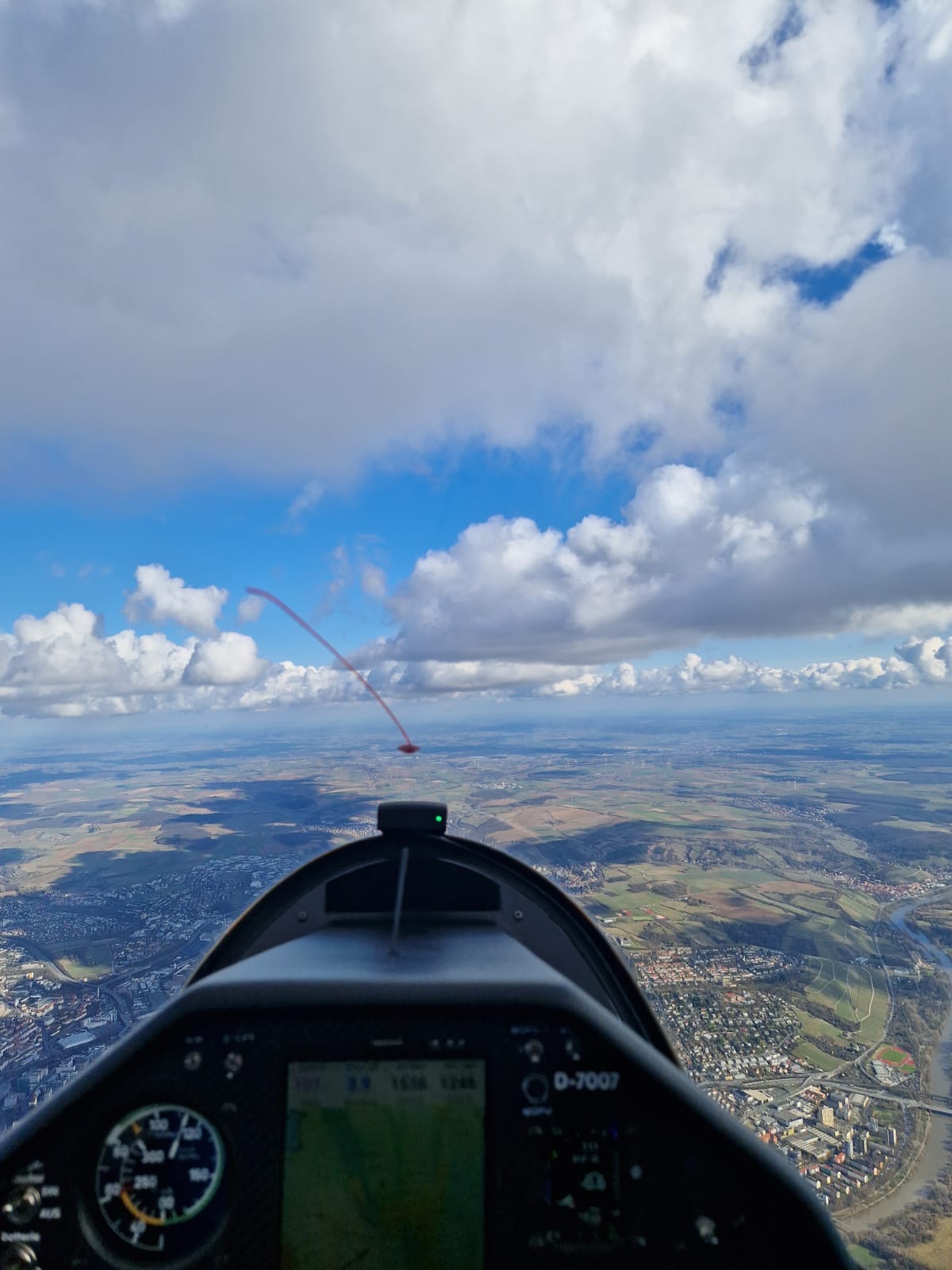 Der Flug begann jedoch anspruchsvoll: Bereits nach einer halben Stunde drohte das Unternehmen beinahe auf einem Acker zu enden. Erst nach mehreren Suchkreisen fanden die Piloten einen rettenden Aufwind von rund drei Metern pro Sekunde. Danach stabilisierte sich die Thermik, sodass Würzburg sicher umrundet werden konnte.